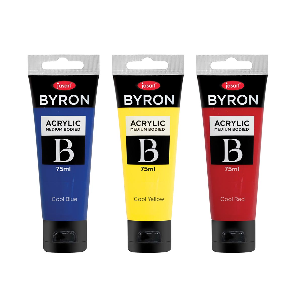 Jasart Byron Acrylic Paints 75ml is a reliable, medium-bodied acrylic paint designed for artists, students, teachers, and hobby painters. This versatile range is known for its vibrant colours, smooth consistency, and easy application on a wide variety of surfaces including canvas, paper, wood, cardboard, glass and more.