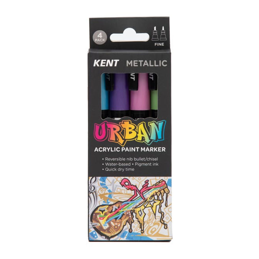 Add shimmering highlights and metallic details to your creative projects with the Kent Urban Acrylic Paint Marker 3mm Metallic Sets. Perfect for precision work, each marker features a fine 3mm bullet tip for clean lines, controlled strokes, and intricate embellishments — whether you're working on paper, cardboard, canvas, wood, plastic, or metal.