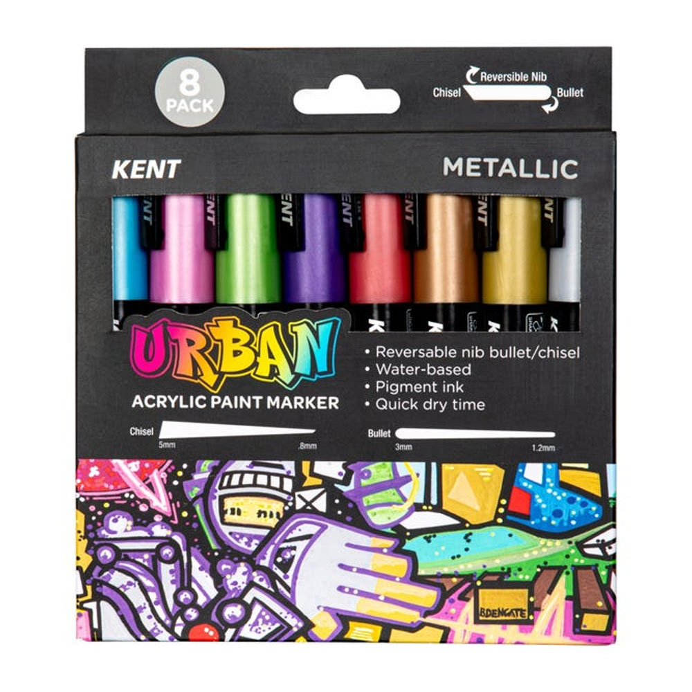 Create dazzling metallic designs with the Kent Urban Acrylic Paint Marker 6mm Metallic Sets — perfect for adding shine and style to any artwork.