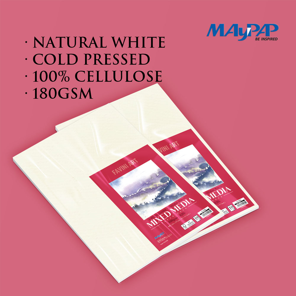 MayArt Mixed Media Paper Packs are the perfect solution for artists who need premium-quality paper in a loose sheet format. Featuring 180gsm Italian-made mixed media paper, these packs are designed for versatility, durability, and superior performance across multiple mediums.