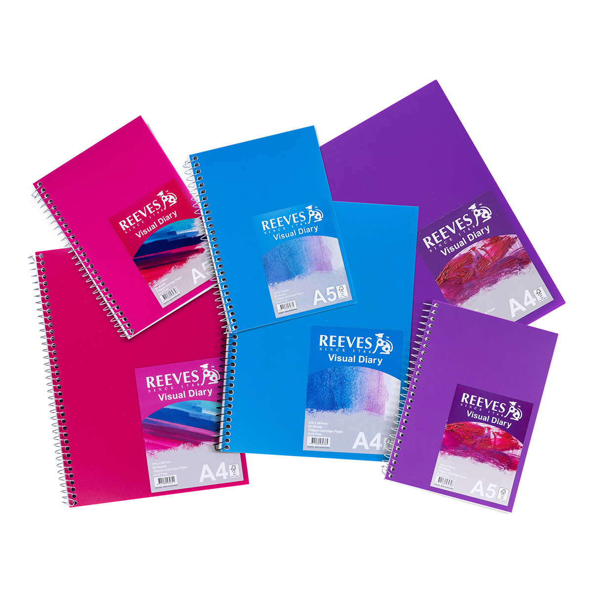 Reeves Visual Diaries are single-wired, spiral bound with brightly coloured polypropylene covers. Reeves Visual Diaries contain 110gsm white cartridge paper. These visual diaries are perfect for all levels of artists, drawers or crafters.
