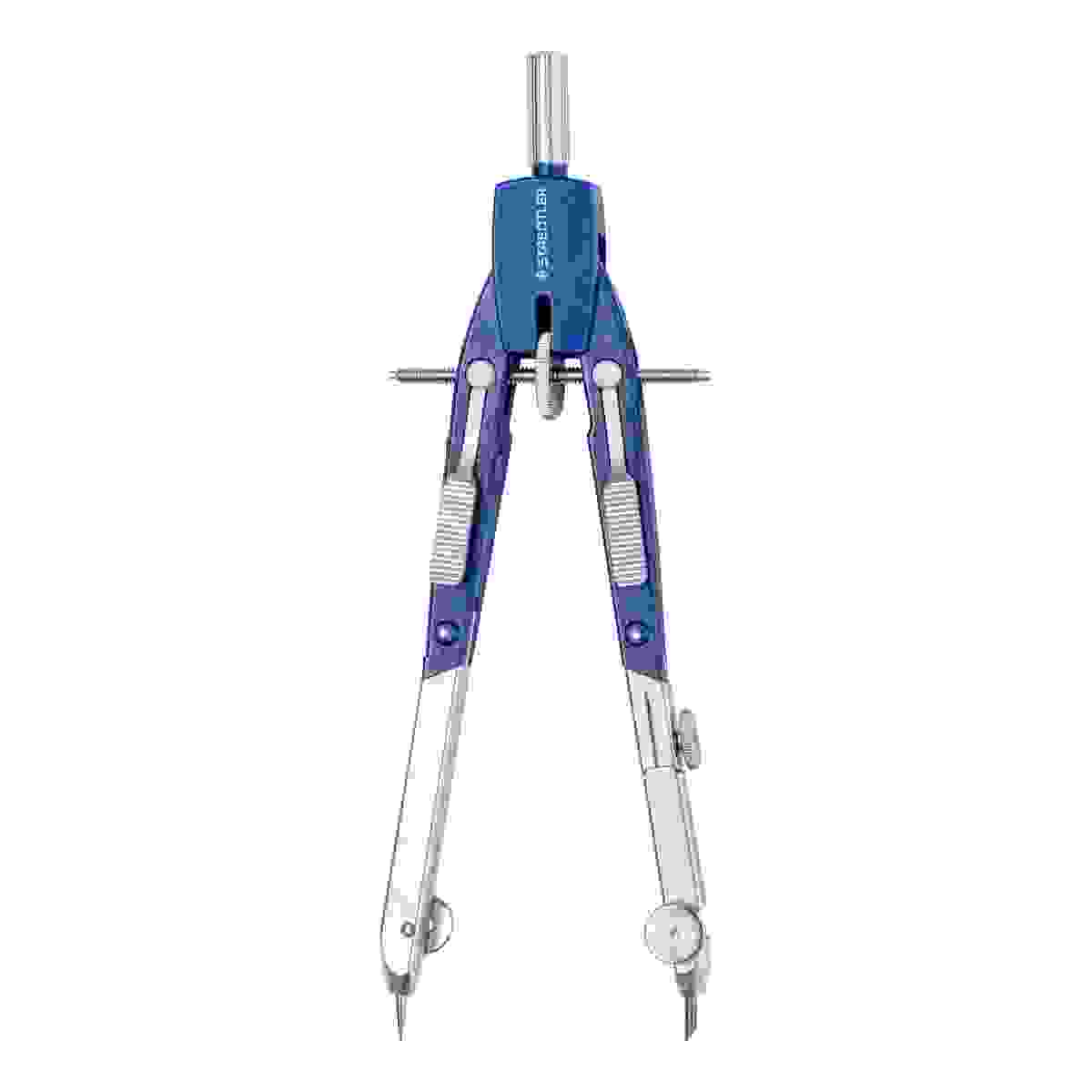 Staedtler Noris Club Compass Set 552 01 features a push-button quick‑setting mechanism and centre wheel for precise and smooth circle adjustments, suitable for students, artists, and technical drawing tasks.